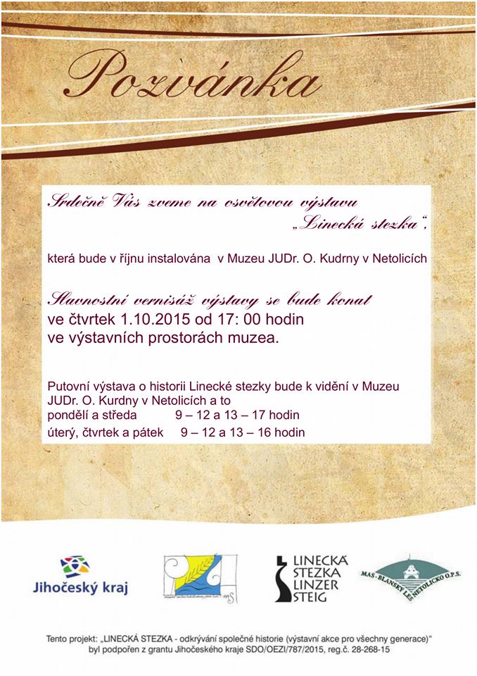 a obnově stezky na půdorysu raně středověké obchodní trasy. Výstavu připravil Archeologický ústav Filozofické fakulty Jihočeské univerzity ve spolupráci s Místní akční skupinou Rozkvět Lhenice, která je nositelem projektu Linecká stezka, a MAS Blanský les - Netolicko.