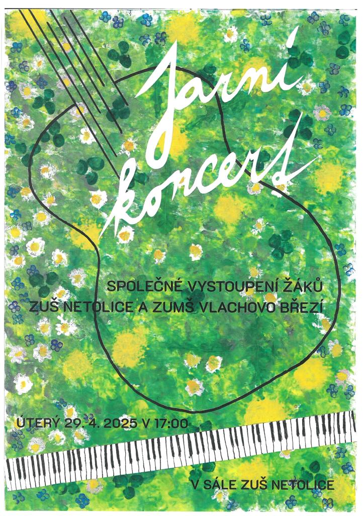 Zveme vás na jarní koncert, kde vystoupí žáci Základní umělecké školy Netolice a Základní umělecké školy Vlachovo Březí.