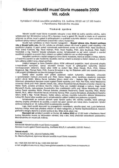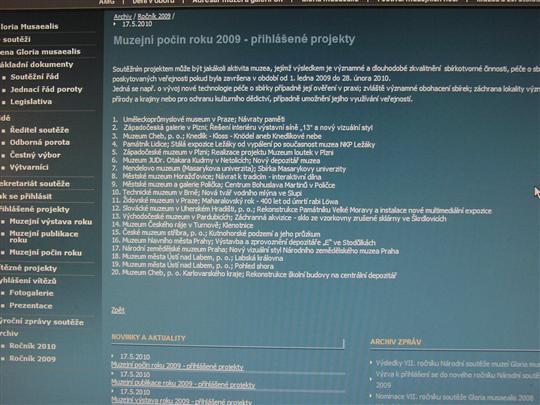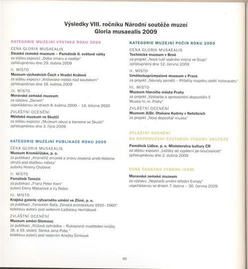 Dne 13. května 2010 byla v Pantheonu Národního muzea v Praze vyhlášena ocenění v soutěžních kategoriích osmého ročníku Národní soutěže muzeí Gloria musaealis 2009. Naše muzeum získalo ocenění v Kategorie Muzejní počin roku 2009