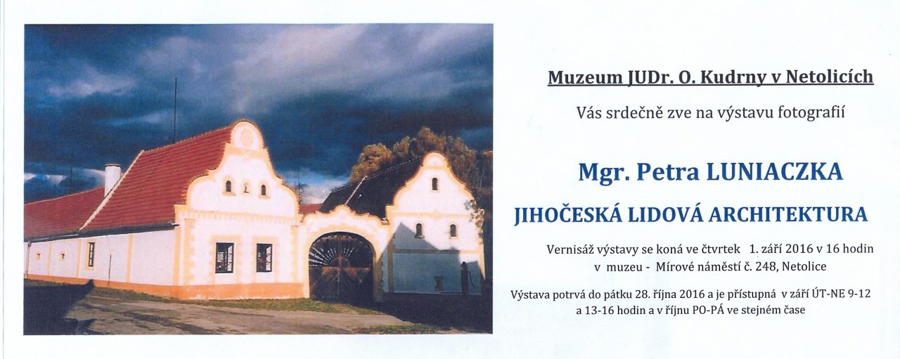 Výstava fotografií Mgr. Petra LUNIACZKA „Jihočeská lidová architektura“ ukazuje na 15 panelech nádheru našich lidových staveb.