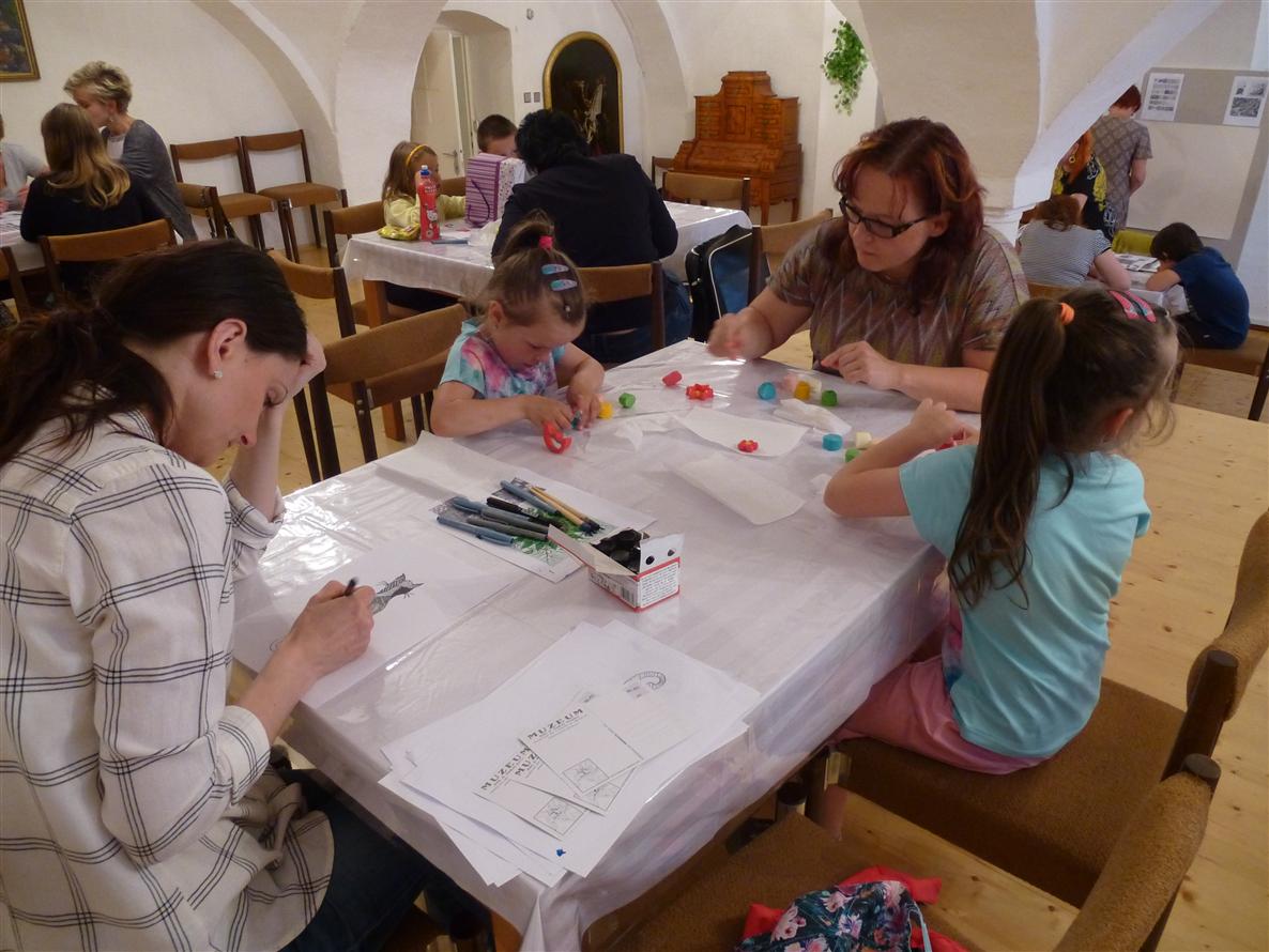 V salonku muzea si přes 50 účastníků z řad dětí i dospělých vyzkoušelo pod vedením netolické Moniky Sádlové „Zentagle“, výtvarnou techniku čárkování pro každého. Z obrázků byl vytvořen jeden obraz, který zůstane i s podpisy jednotlivých autorů uložen v muzeu. Z Vodňan přijela paní Zuzana Návarová, která poskytla produkty a poradila při modelování z „Čokolíny“. Vymodelované figurky si modeláři odnesli sebou domů. Dobrá nálada provázela všechny účastníky celý večer.