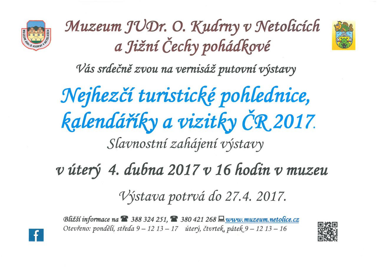 Pohlednice ve výstavě jsou z 20. ročníku soutěže "O nejhezčí pohlednici České republiky 2017" 4. ročníku soutěže Kapesní kalendářík 2017 a 3. ročníku soutěže o Turistickou vizitku ČR 2017 pořádané Veletrhy Brno a.s., Asociací turistických informačních center ČR, Českou centrálou cestovního ruchu – CzechTourism, Oborovou zdravotní pojišťovnou, Českým rozhlasem ČB, Rádio Blaníkem, Filokartií.com, Pohádkovými a zážitkovými regiony o.s a Pohádkovým královstvím o.s.