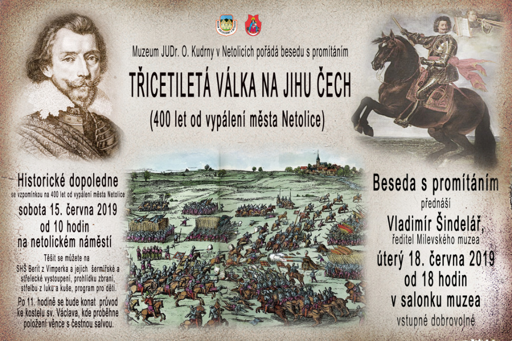 Vladimír Šindelář, spisovatel a ředitel Milevského muzea, pohovoří o událostech, které se odehráli před 400 lety a pochopitelně nebudou chybět fakta o vypálení Netolic.
